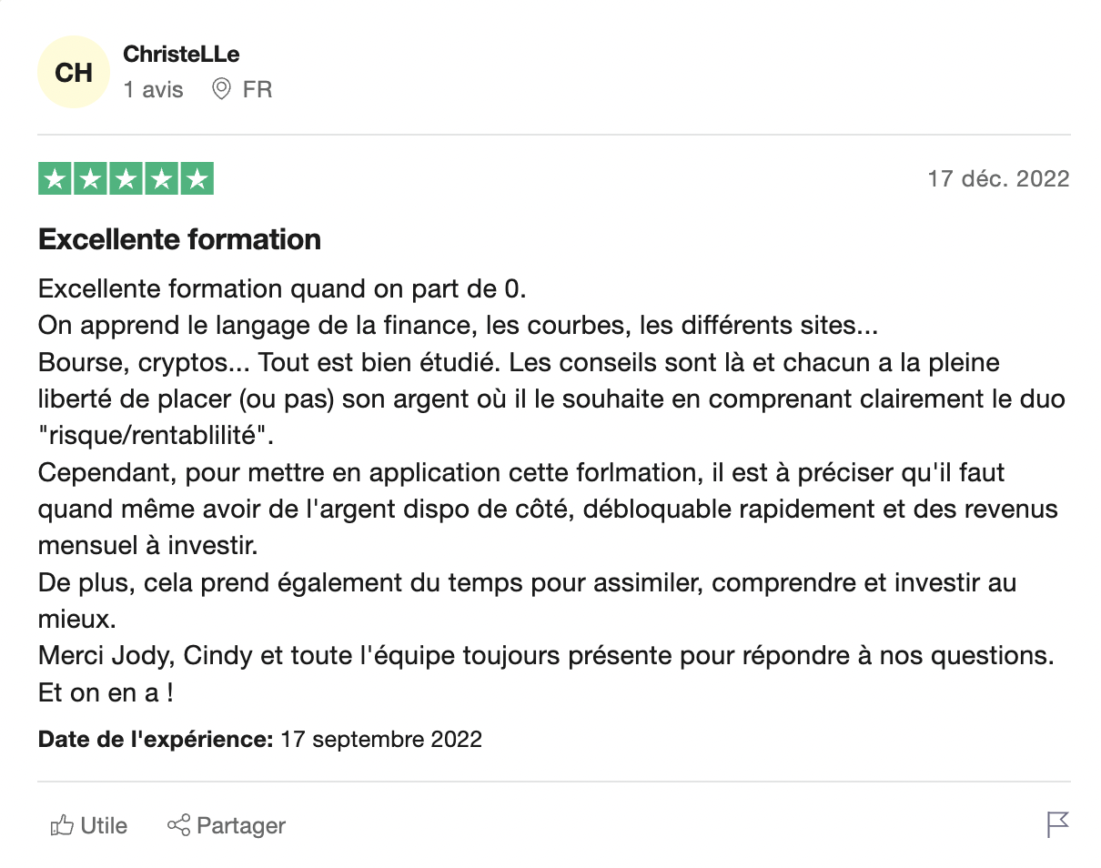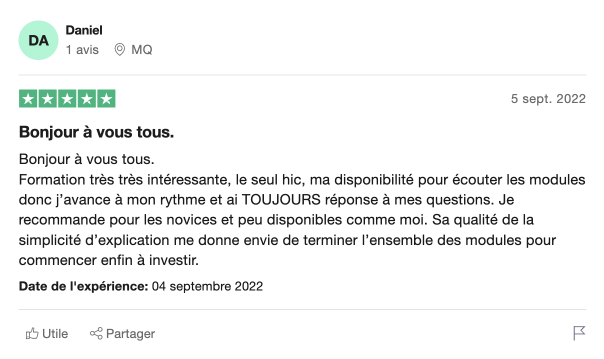 La formation a été pensée justement pour les débutants, ceux qui n’ont jamais investi ou qui ont encore peur de se lancer.
