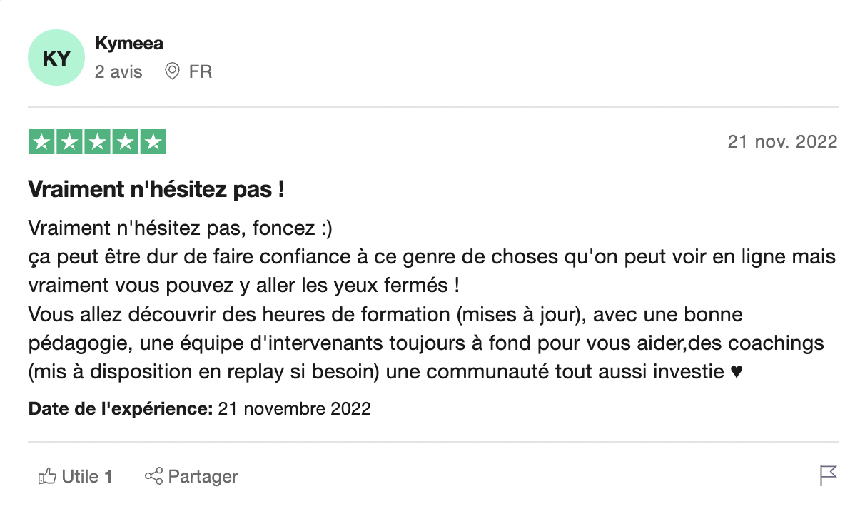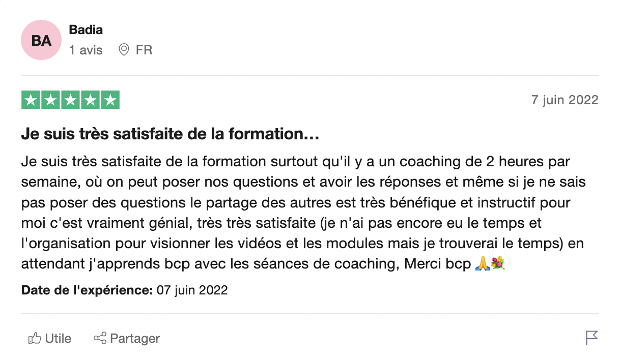 Et si tu choisis l’option avec coaching ou accompagnement, on travaille ensemble sur ton cas précis, donc tu avances encore plus vite.